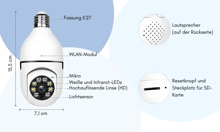 Außerdem sollte eine originelle, aber auch unauffällige Möglichkeit gefunden werden, sie zu befestigen. Daher kam die Idee auf, die Kamera mit jeder Glühbirnenfassung kompatibel zu machen.